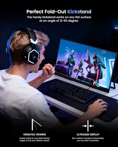 Monitor de juego rápido de 0.1 ms: con un tiempo de respuesta ultrarrápido de 0.1 ms, este monitor portátil para juegos ofrece transiciones instantáneas de píxeles que eliminan el desenfoque de movimiento y el efecto fantasma, asegurando imágenes nítidas y una suavidad inigualable para cada fotograma.
