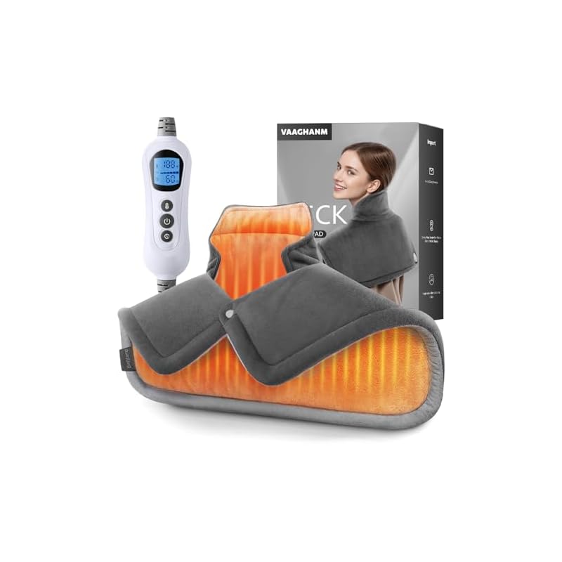Especificaciones: VAAGHANM Almohadilla térmica: almohadilla térmica eléctrica para aliviar el dolor, almohadillas térmicas instantáneas ponderadas para cuello y hombros, 6 opciones de calor y 6 modos de temporizador