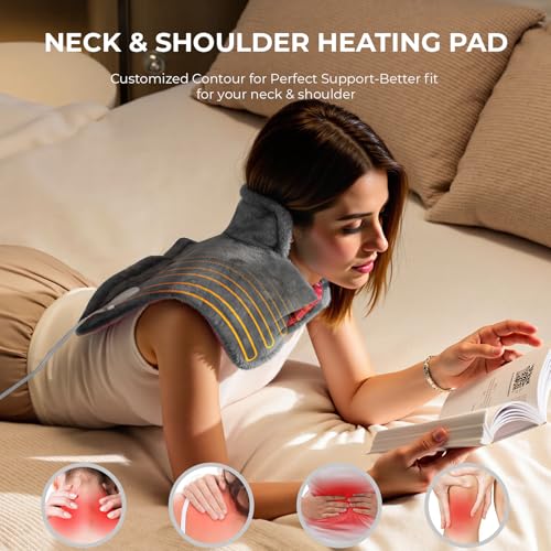 VAAGHANM Almohadilla térmica: almohadilla térmica eléctrica para aliviar el dolor, almohadillas térmicas instantáneas ponderadas para cuello y hombros, 6 opciones de calor y 6 modos de temporizador