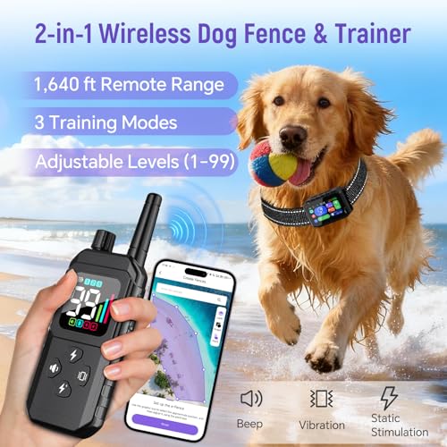 Valla inalámbrica para perros con GPS, con collar de perro, aplicación remota y gratuita, valla GPS personalizada, pitido/vibración/estática, IP67 impermeable, batería de larga duración