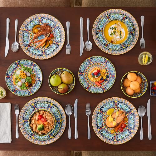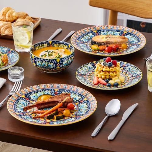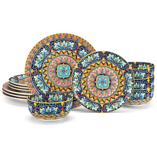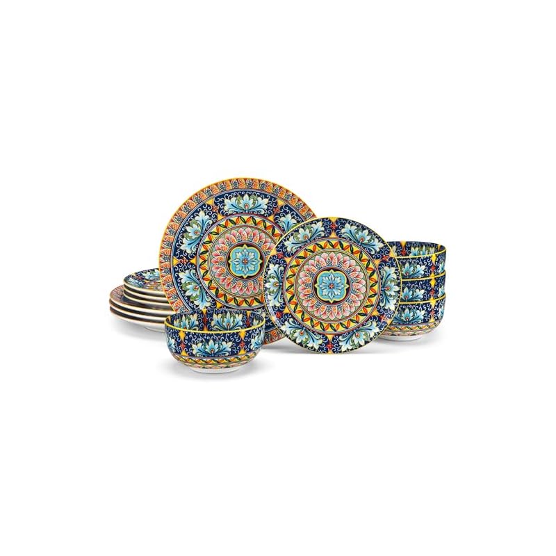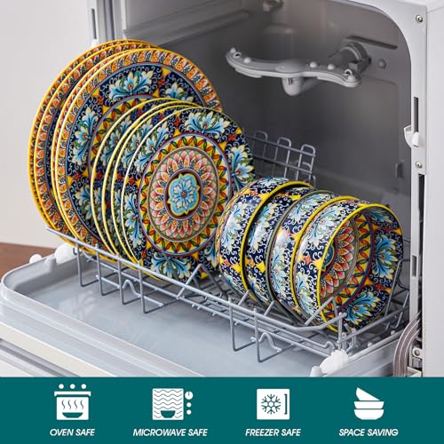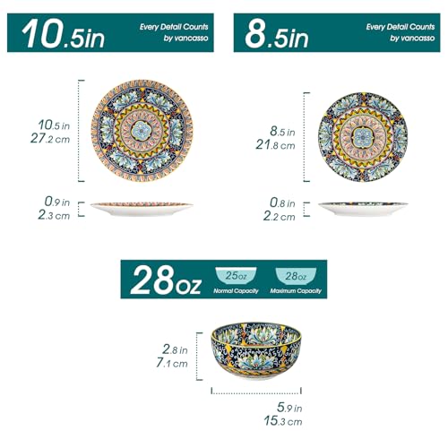 Especificaciones: vancasso Juego de vajilla de 12 piezas, platos y cuencos amarillos, juego de platos de porcelana para 4, aptos para microondas y lavavajillas, resistente a los arañazos, estilo bohemio, servicio de
