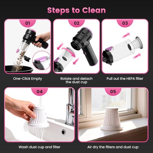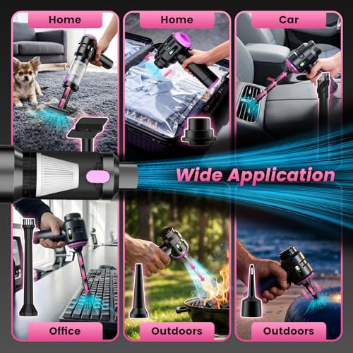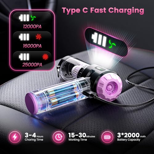 Especificaciones: Wansimoo Aspiradora de mano para automóvil, 25000 PA, fuerte succión ciclónica plegable, mini aspiradora portátil, inalámbrica con pantalla digital y eliminación de polvo con un solo toque para