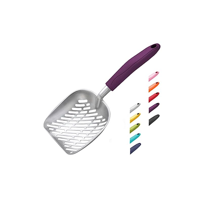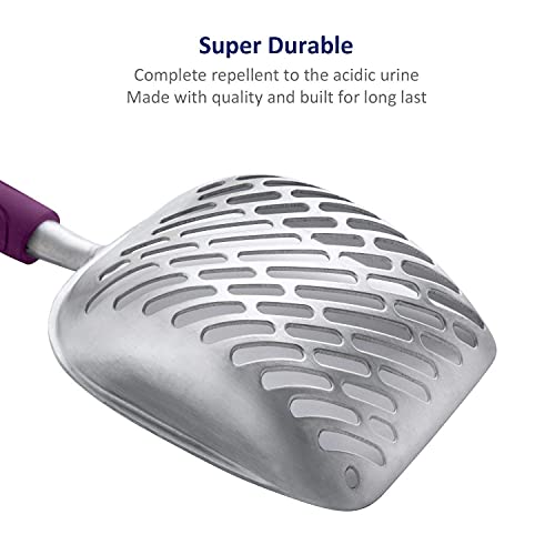 [Color & Size]: Irregularly aluminum body with Violet handle; Medium Size Pooper Scooper – Length 11 x Width 4.75 x Deep 1.60 Inch.
