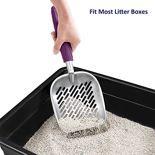 WePet Cuchara de arena para gatos, tamiz de aleación de aluminio, pala de metal para gatitos, pala profunda con agujero diagonal, mango largo, elevador de excrementos de gatito para caja de arena