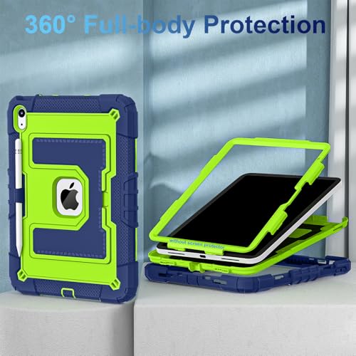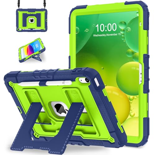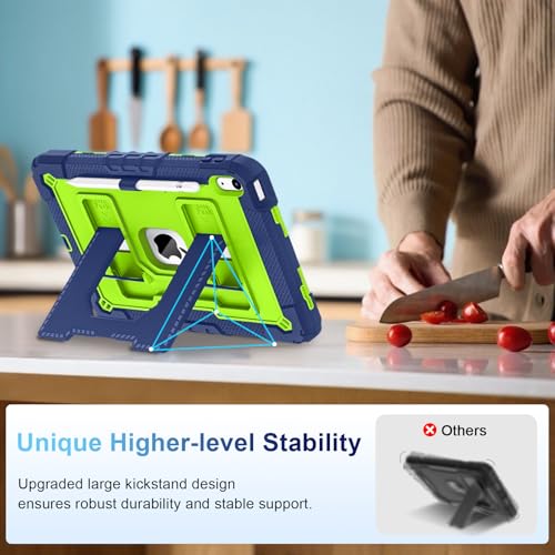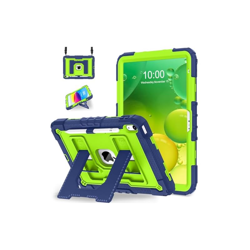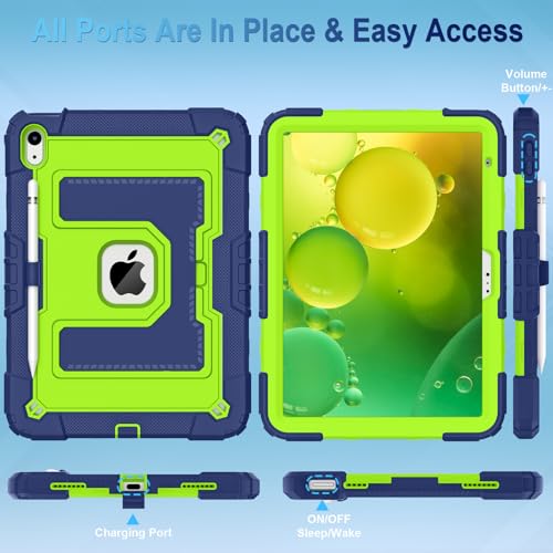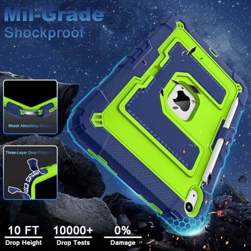 Protección contra caídas de grado militar: la funda para iPad de 10.9 pulgadas de 10.ª generación está hecha de policarbonato a prueba de golpes y silicona suave, esquinas gruesas de grado mejorado y diseño a prueba de golpes, evita arañazos diarios causados por superficies rugosas u objetos afilados y bordes elevados para proteger la cámara, la súper absorción de impactos proporciona protección completa del cuerpo