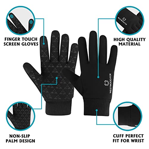 WESTWOOD FOX Guantes de invierno para pantalla táctil, ligeramente impermeables, térmicos, cálidos, antideslizantes, para correr, ciclismo, guantes resistentes al viento con puños elásticos para hombres y mujeres