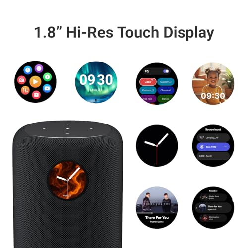 Toque lo que escucha: la pantalla redonda de 1.8 ″ muestra el arte del álbum, la hora, la información de la pista y proporciona control instantáneo: reproducción/pausa, salto, fuentes, ecualizador rápido, ajustes preestablecidos, no requiere teléfono.