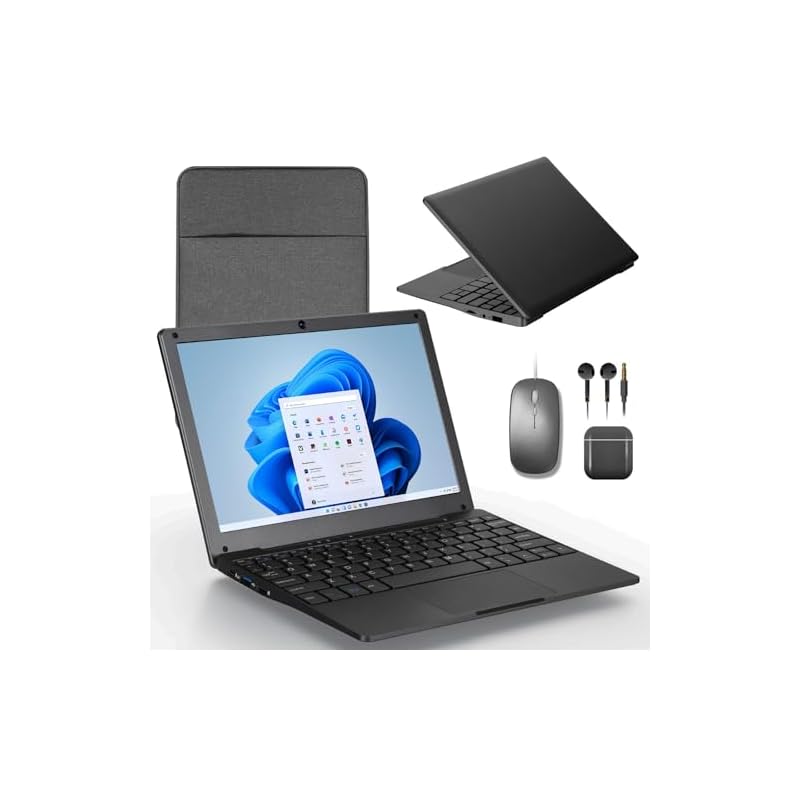 Especificaciones: win11 – Computadora portátil, 8 GB de RAM y 128 GB de ROM, procesadores Celeron de doble núcleo, computadora portátil de 10 pulgadas con WiFi, cámara web y Bluetooth, mini portátil con bolsa