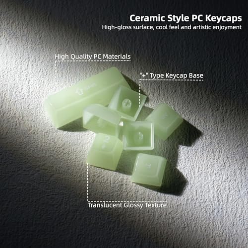 Transparent RGB Creamy Matcha Green Jelly Keycaps: WOMIER Translucent design of the keycap makes the RGB lighting of your keyboard Starlight Glimmer. Key caps superior translucent design, similar to pudding keycaps but even more transparent, ensures clear, shine-through lighting, make the RGB keyboard feel dreamy during the day and turn into gorgeous mode at night.