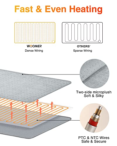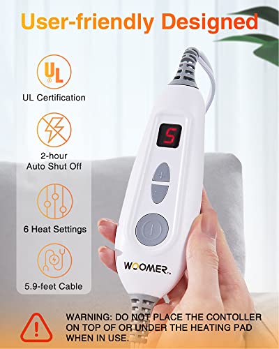 WOOMER Almohadilla térmica extragrande, almohadilla térmica eléctrica para aliviar el dolor de espalda y calambres, almohadilla térmica con opción multicolor, función de terapia de calor húmedo