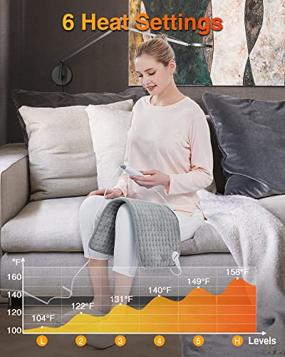Diseño fácil de usar: esta almohadilla térmica extra grande tiene 6 niveles de temperatura que le permite personalizar el calentamiento rápido y suave deseado de acuerdo con las necesidades personales (104℉-158℉) con el controlador. El apagado automático de 2 horas ayuda a evitar quemaduras a baja temperatura
