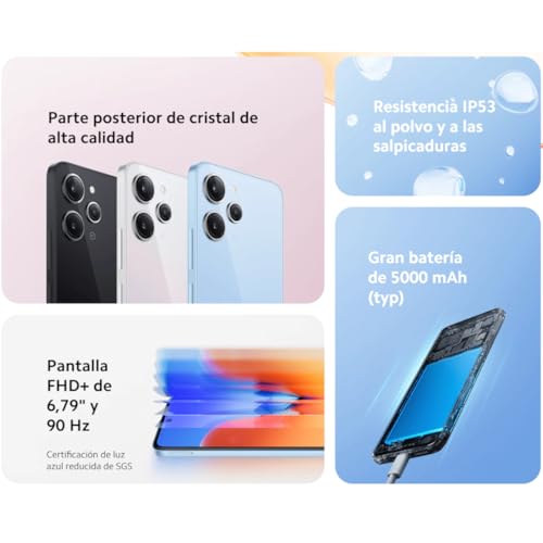 Especificaciones: Xiaomi Redmi 12 4G – Smartphone de 4+128GB, Pantalla de 6,79″ FHD+ AdaptiveSync 90 Hz, MediaTek G88, Triple cámara de 50MP, NFC, batería de 5000 mAh, Negro (Versión ES)