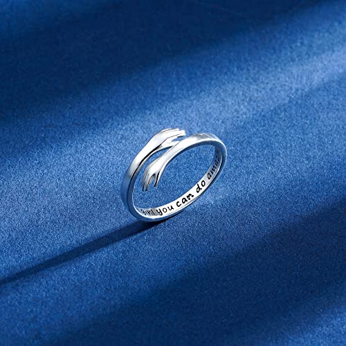 Yesteel – Anillo en forma de abrazo, de plata de ley S925 y ajustable para mujeres y adolescentes, regalos de cumpleaños y el Día de la Madre para hija, mamá, hermana, esposa, amiga y abuela