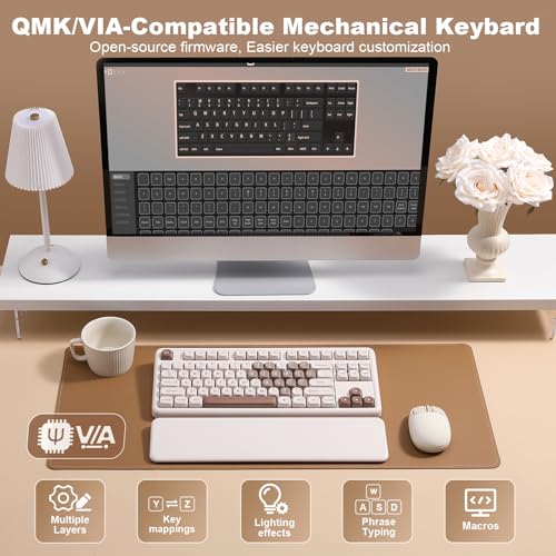Teclado mecánico de 87 teclas con reposamuñecas suave al tacto: el teclado mecánico inalámbrico YUNZII B87 utiliza un diseño del 80%, proporcionando una solución que ahorra espacio para tu escritorio mientras mantiene una funcionalidad completa. Las exclusivas teclas PBT de sublimación de tinte con patrón de oso añaden un toque de personalidad a tu experiencia de escritura. El marco del teclado está hecho de material ABS de alta calidad y viene con un reposamuñecas suave al tacto, asegurando durabilidad mientras ofrece una sensación agradable al tacto para un uso cómodo
