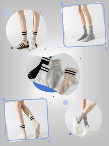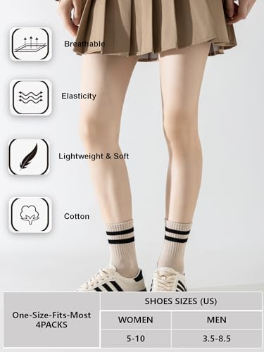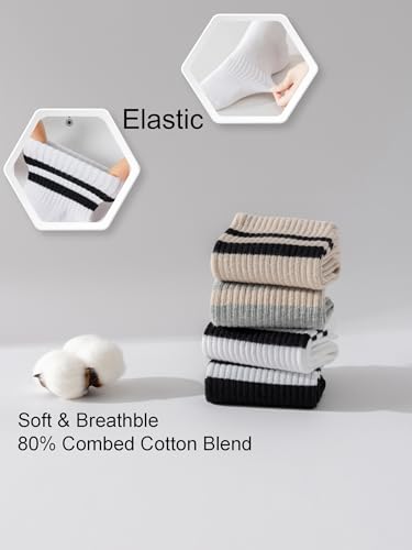 Especificaciones: YUWELL Calcetines a rayas para mujer, calcetines casuales de algodón acogedores para mujer, 4 pares, talla 5-10