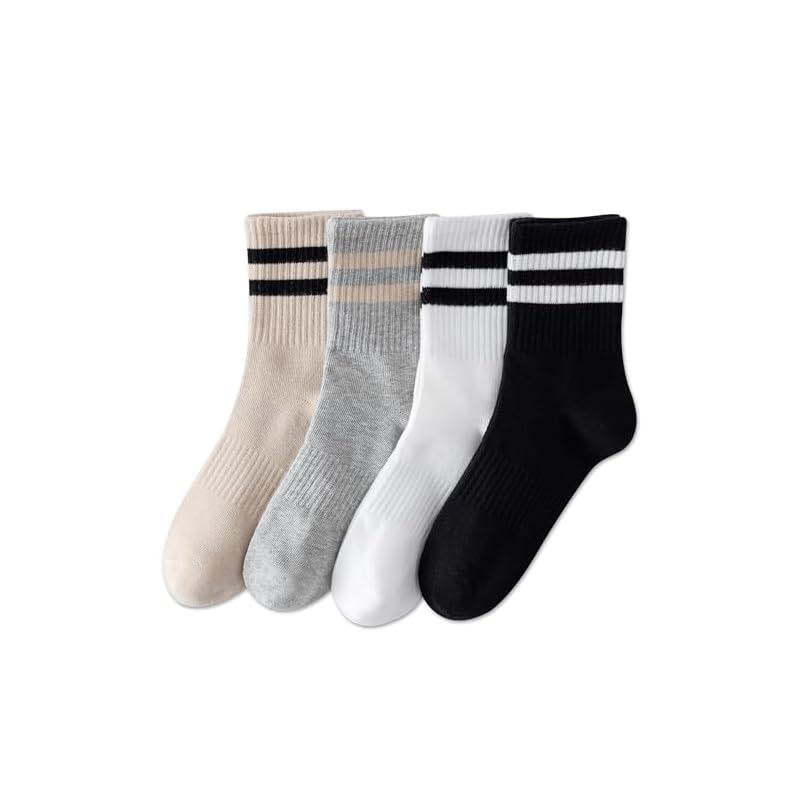 YUWELL Calcetines a rayas para mujer, calcetines casuales de algodón acogedores para mujer, 4 pares, talla 5-10