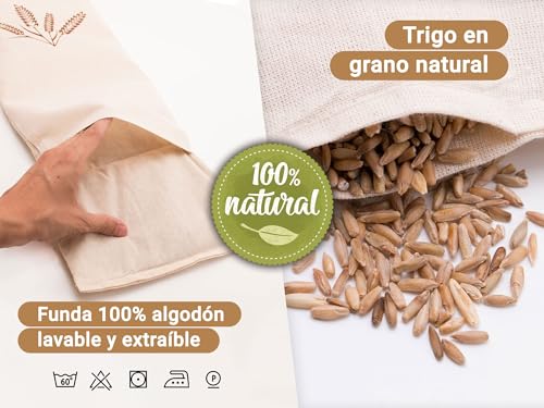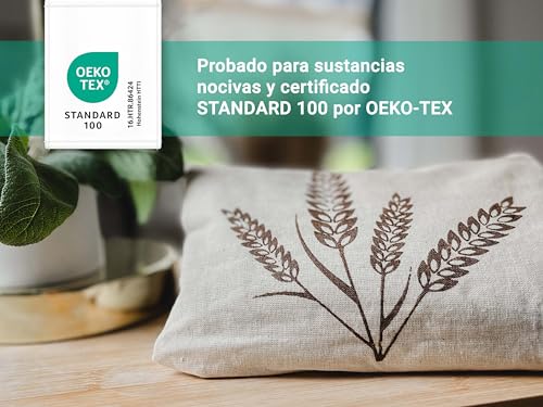 MATERIAL. Los granos de trigo son naturales y la funda es de algodón 100%, extraible y lavable hasta 60°. Dispone del certificado STANDARD 100 by OEKO-TEX (R) ( 16.HTR.86424 Hohenstein HTTI).
