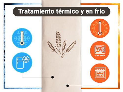 TRATAMIENTO CON CALOR. El cojín térmico está especialmente recomendado contra dolores de cuello, de espalda, articulaciones, lumbares y todo tipo de dolores musculares. Se puede calentar en el horno (aprox. 15 minutos a 100°) o en el microondas (aprox. 2 min a 600 °).
